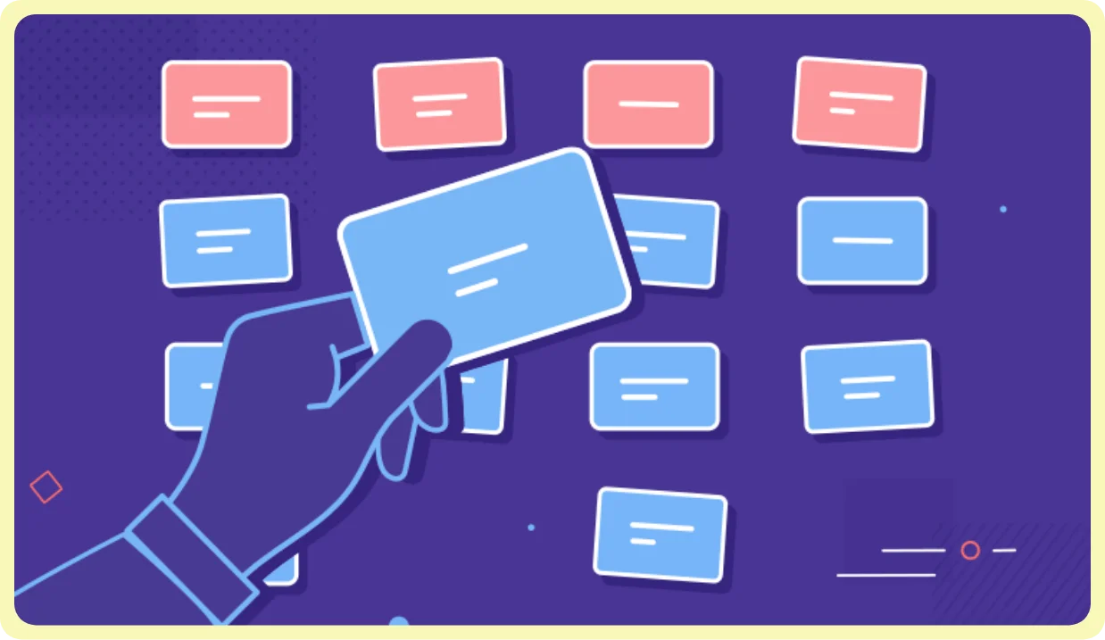 There are primarily three different kinds of card sorting processes, namely open card sorting, closed card sorting, and hybrid card sorting: